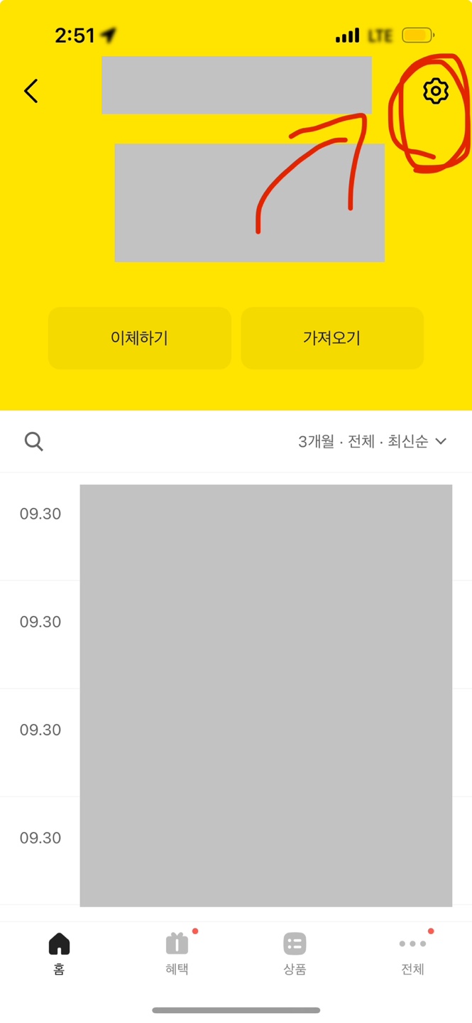 - 개설된 계좌 클릭 -> 우측 상단의 톱니바퀴 아이콘 선택